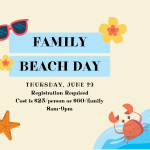 Family Beach Day in Galveston. Meet at 8:00 AM and Return by 9:00 PM. Cost is $25 per person or $60 per family.